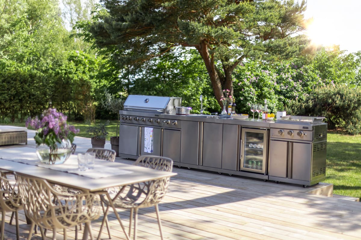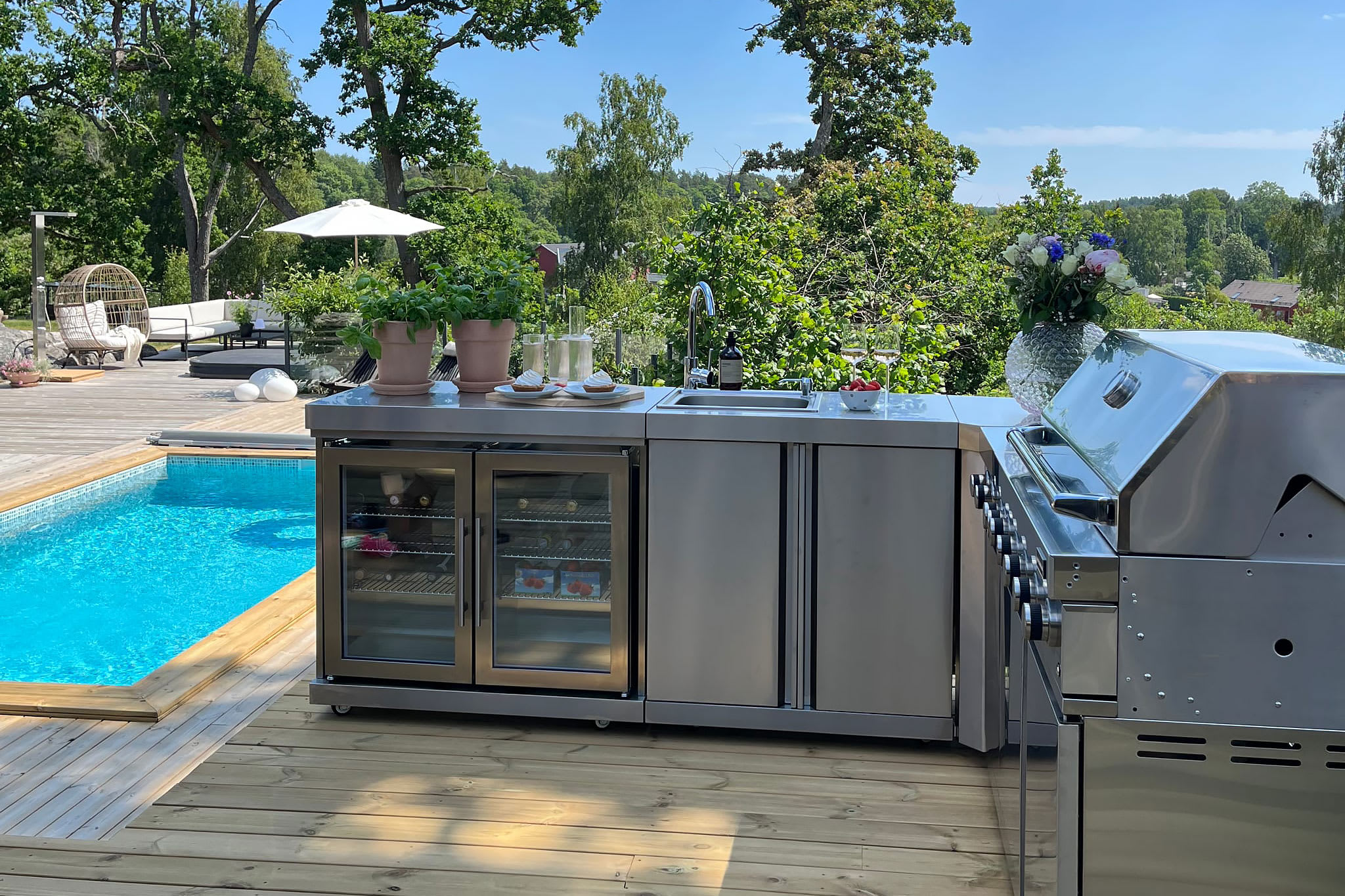 Schaffen Sie mit den Außenküchen der Nordic Line Ihre persönliche Outdoor-Kochoase! Dank des flexiblen modularen Systems können Sie das Grundmodul in der gewünschten Größe wählen und mit einer Vielzahl von Funktionen kombinieren, um Ihre perfekte Outdoorküche zu gestalten. Lassen auch Sie sich von der Vielfalt überzeugen: Nordic Line Outdoorküchen.